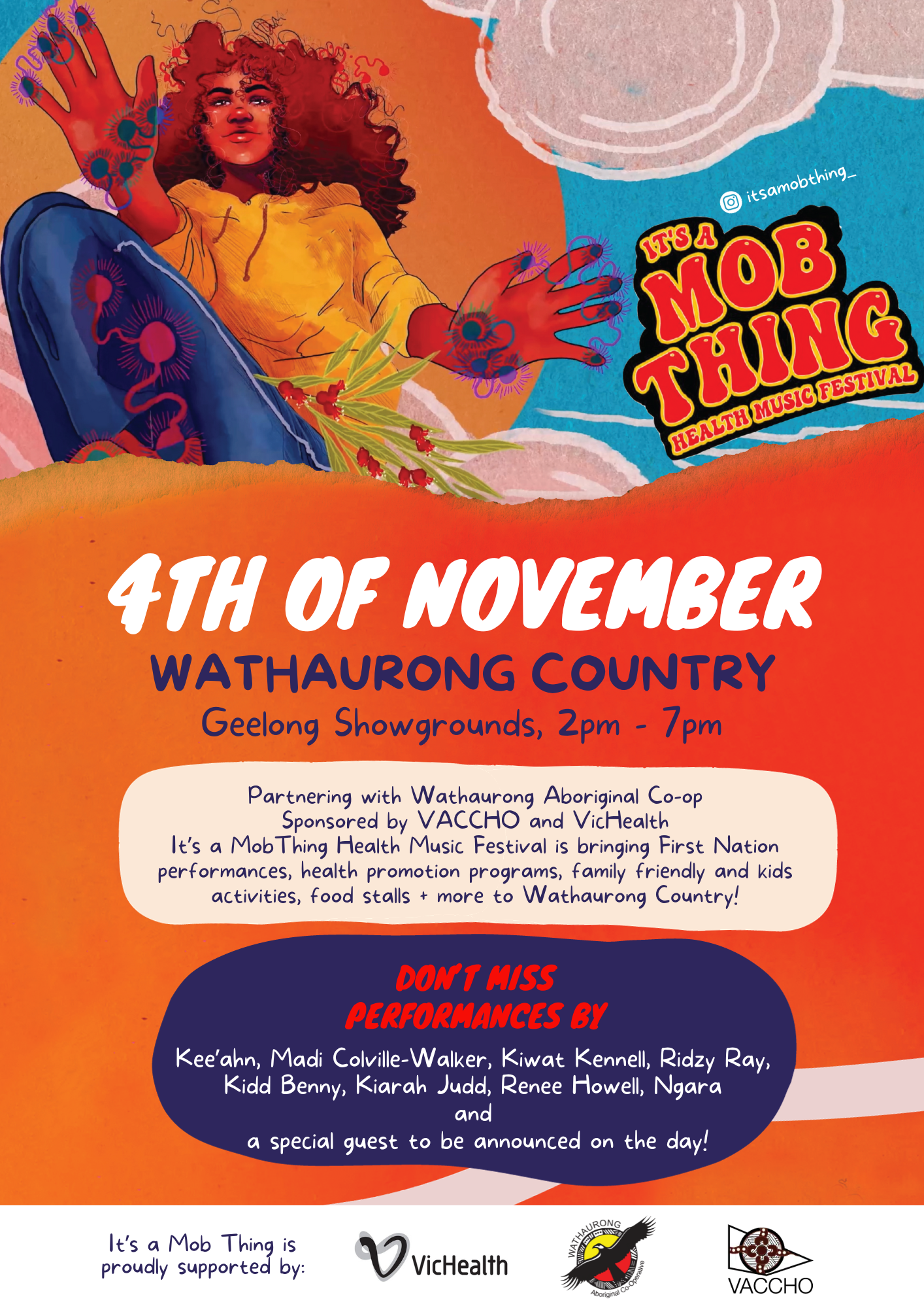 This year It's a Mob Thing festival will be running with Wathaurong Aboriginal Co-Op at their new cultural centre- Booln Booln 410 Surf Coast Hwy, Grovedale VIC